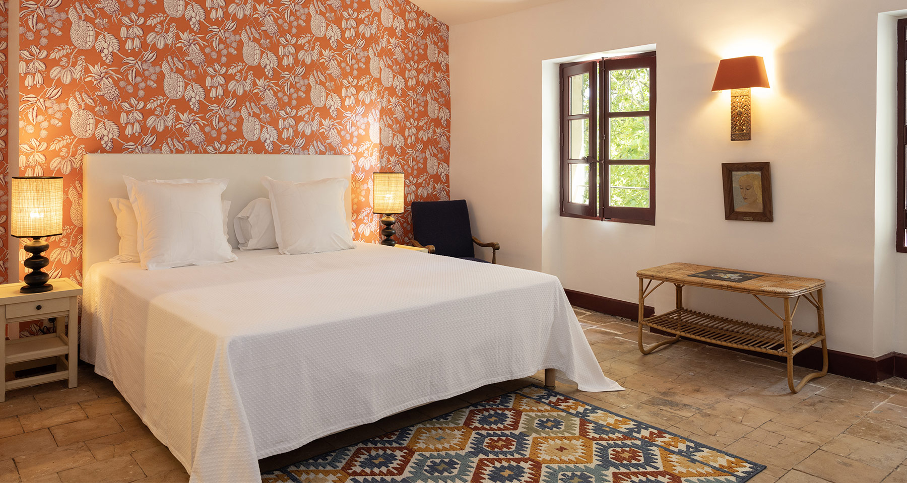 The 18th century farmhouse, recently renovated using high quality local materials in keeping with its historical charm and character, retains beautiful old floors, the original stone staircase and vast fireplaces.